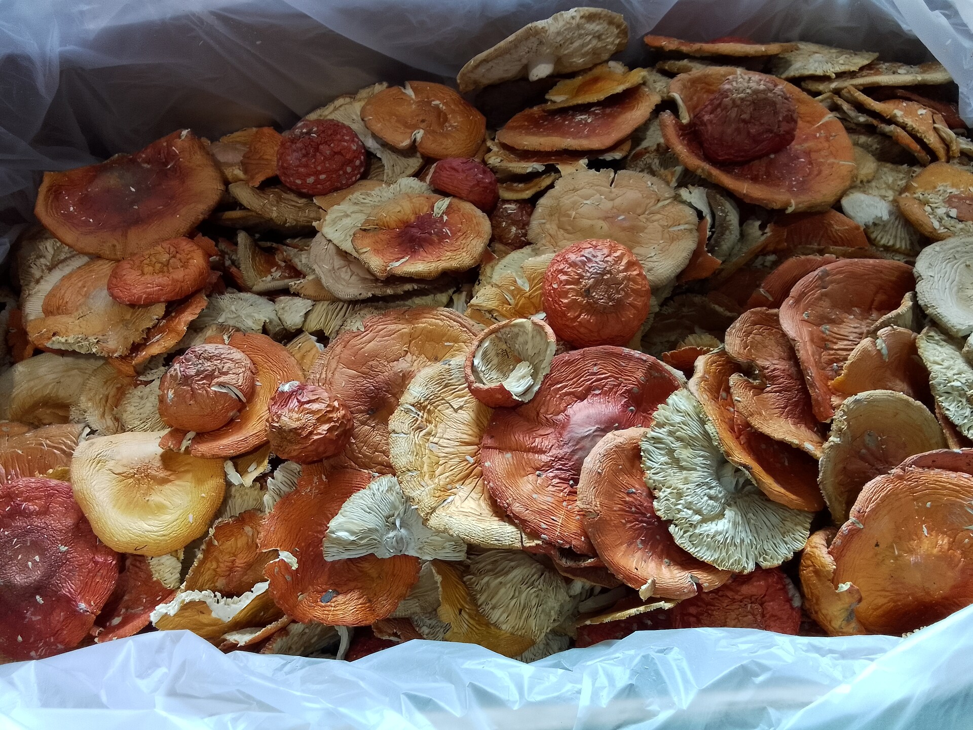 Сухие мухоморы, и красные и пантерные, теряют в весе примерно в 10-11 раз относительно сырых.